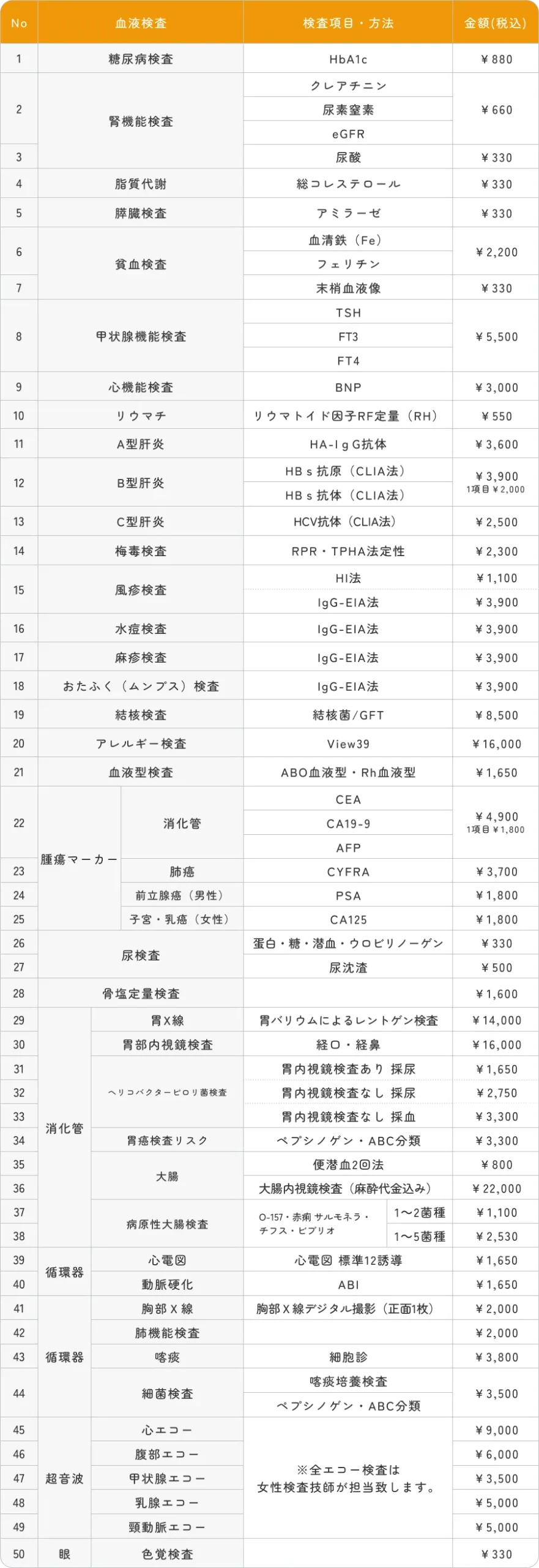 検査内容・料金の目安